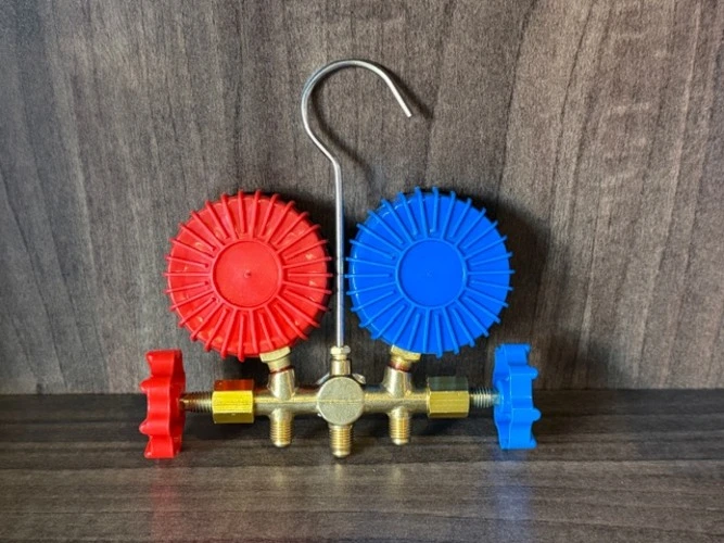 The CT-356 brass manifold gauge set is a diagnostic and service tool. Used by HVACR (Heating, Ventilation, Air Conditioning, and Refrigeration) technicians to work on air conditioning and refrigeration systems.