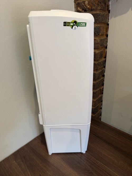 A pump circulates water from the tank on to a cooling pad making it wet.