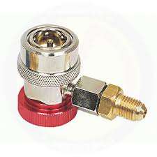 An Auto Quick Coupling High Side R134a is a specialized adapter used in automotive air conditioning (A/C) systems to safely connect manifold gauges for diagnosing, charging or evacuating refrigerant, specifically for the high-pressure side (red) of the R134a system, allowing quick, secure hook-ups without refrigerant loss during servicing.