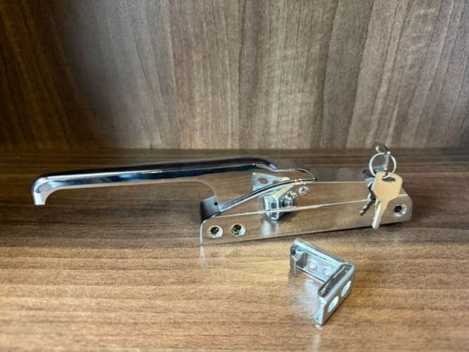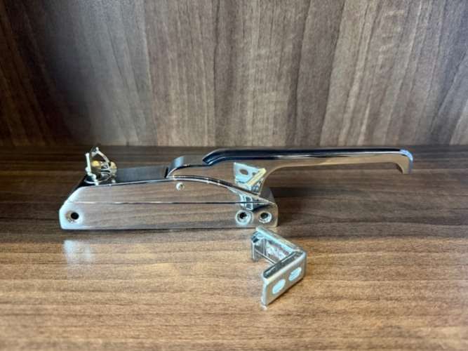 Edge mount mechanical latches are heavy-duty. Surface-mounted locking mechanisms used primarily on commercial refrigerators, walk in coolers, freezers, and food service equipment. They ensure doors remain tightly sealed, often featuring adjustable strikes to compensate for gasket wear and optional key locks for security.