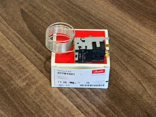 Electromechanical thermostat 077B is used to control the temperature in refrigerators, upright and chest freezers, liquid coolers, bottle coolers and small commercial refrigeration appliances.