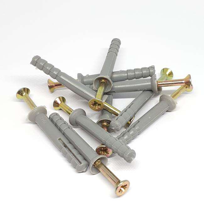 Installation: They are designed for quick and simple installation using only a hammer (impact installation). The nail is driven into the pre-drilled hole, which expands the nylon plug to create a secure, locking grip within the base material.
