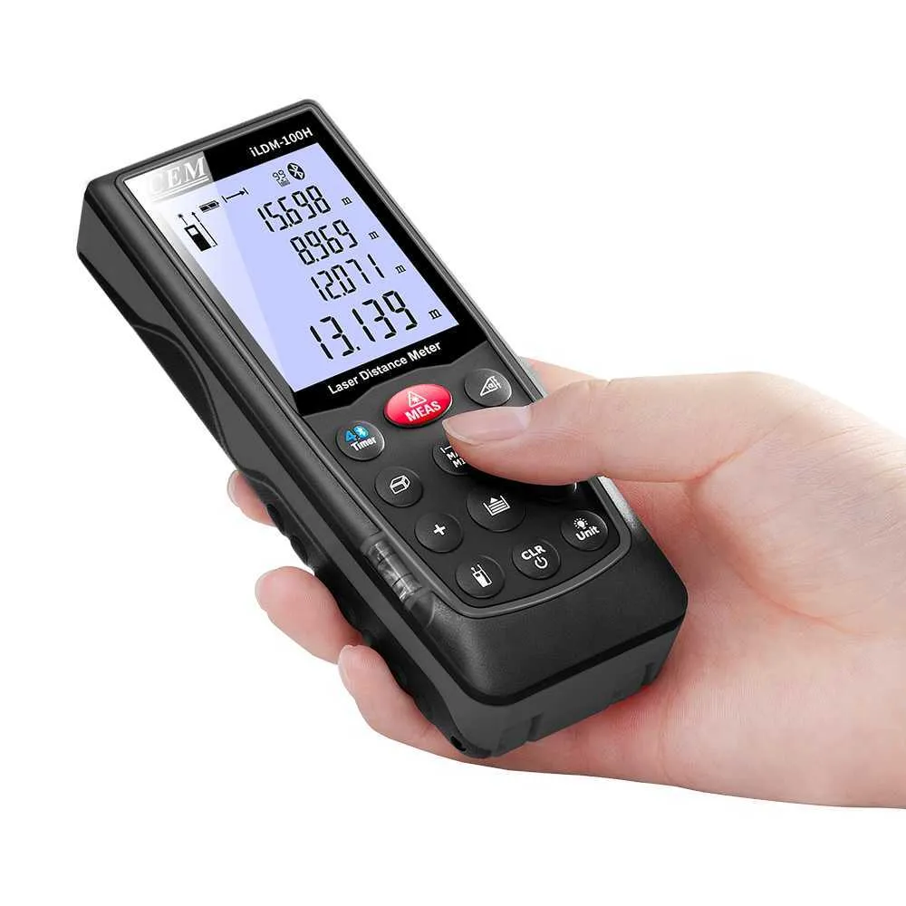 This MT152 100m Laser Distance Meter is designed to give special users a high accuracy. One person distance measuring and estimating tool to measure remote and difficult to reach places. This meter has the enhanced ability to take measurements in outdoor applications. Shortcut keys for addition, subtraction, Pythagoras, area and volume calculation make measuring fast and very reliable. The last 20 measurements are stored and can be transferred via Bluetooth to Android or iOS mobile devices. The IP54 double moulded rubber case is splash proof and dust resistant.