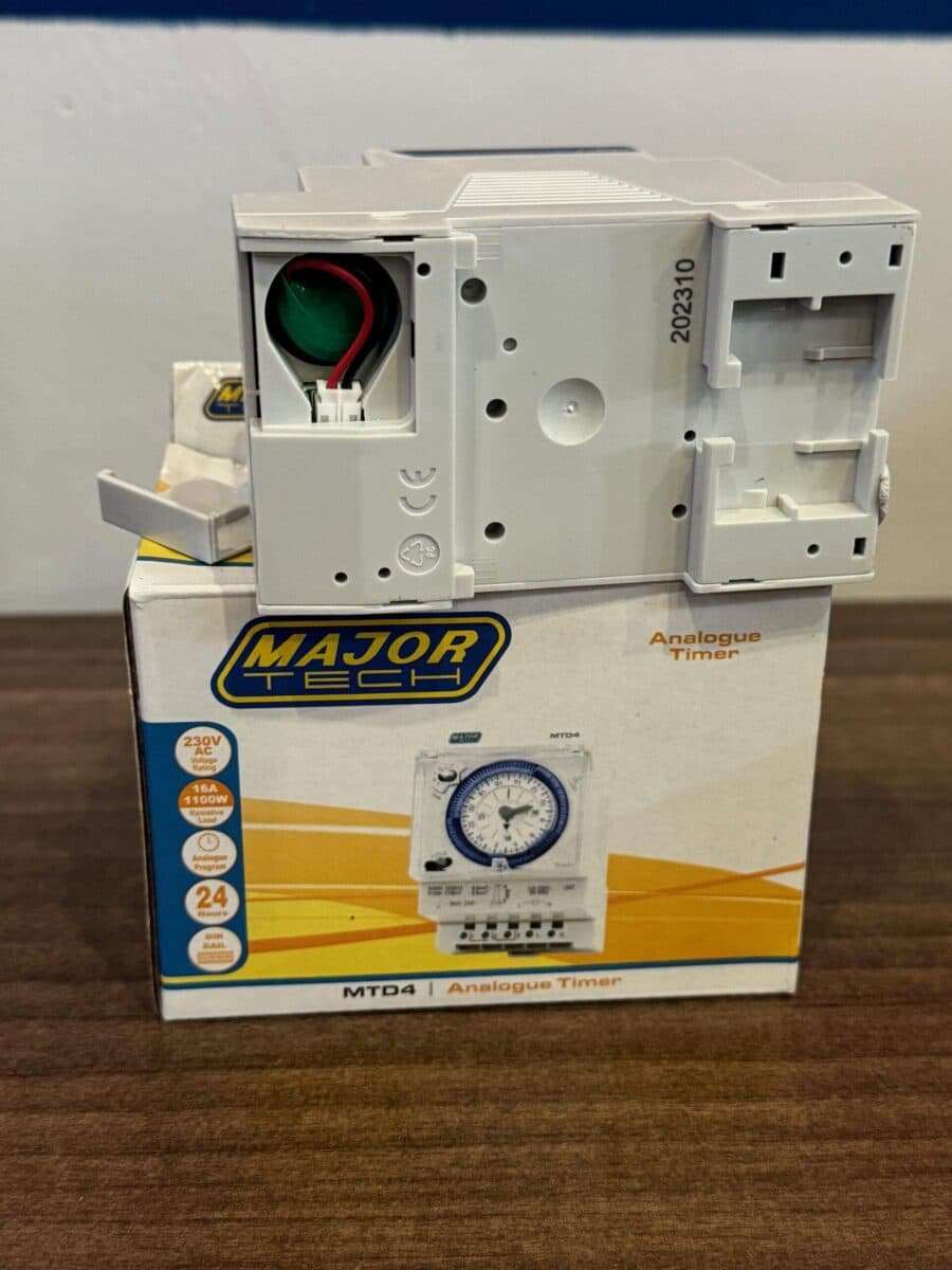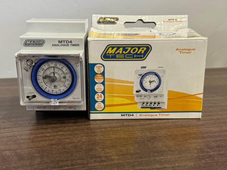 The MTD4 Analogue timer is ideal for geysers , swimming pools, heaters, irrigation , office power , home or industrial. Also works great on cold rooms and freezer rooms. The timer can be set daily with 8 ON/OFF programs to control appliances in 24 hours or set weekly. With 96 programs to control ON or OFF in one weeks. the timer also comes with a back up batter with a very long life.