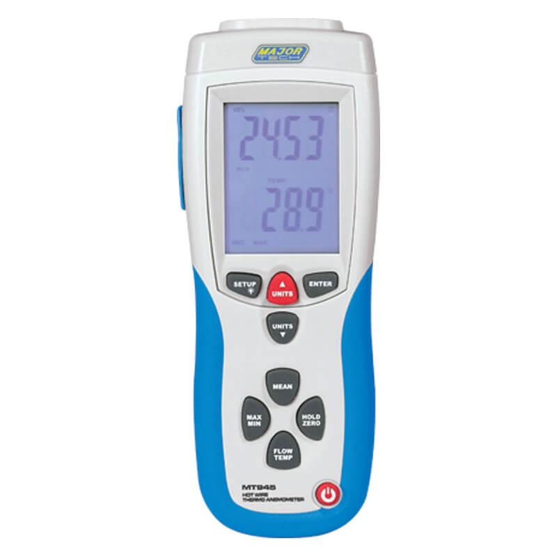 The MT948 is an accurate Thermo Anemometer that measures Air Velocity, Air Flow and Temperature. The meter is capable of measuring CMM (cubic meters/minute) or CFM (cubic feet/minute) by simply entering the area of the air source and can store 8 memory locations for both CMM and CFM for the most commonly used area sizes that the user can recall at anytime. This Thermo Anemometer comes with a remote vane that has a built-in temperature sensor, which simultaneously displays the wind speed and temperature on the large easy -to-read backlit LCD. The MT948 is ideal for monitoring commercial and domestic air conditioning systems and is useful as the sensor can be held in the duct and the operator can read the measurements.
