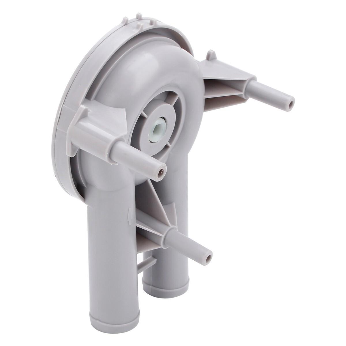 This pump helps expel water from the washing machine and is activated after the spin speed is maintained for a specific period of time. It is intended for use with washing machines that do not have belts. This drain pump has two ports for water to pass through: both ports are the same size.