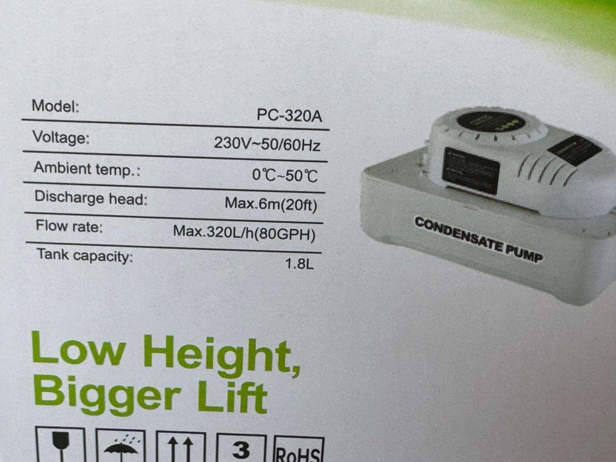 The lack of a pump to remove the excess water from the drain pan could lead to water spilling over and seeping into the flooring or carpets.